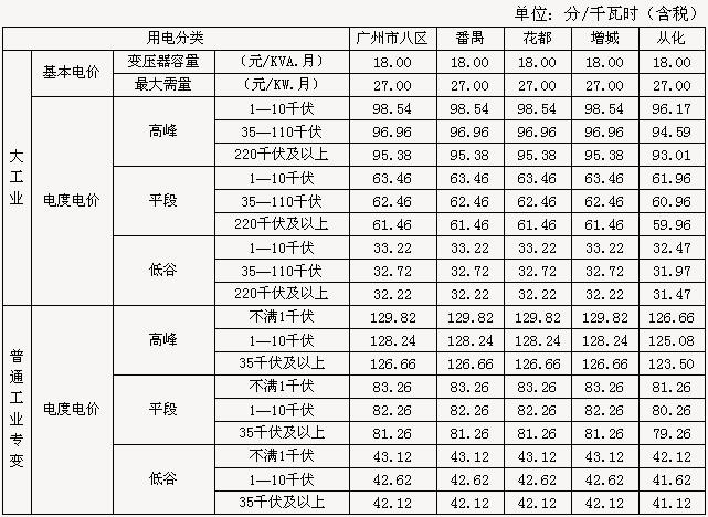 执行范围:大工业用户及普通工业专变用户