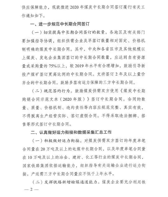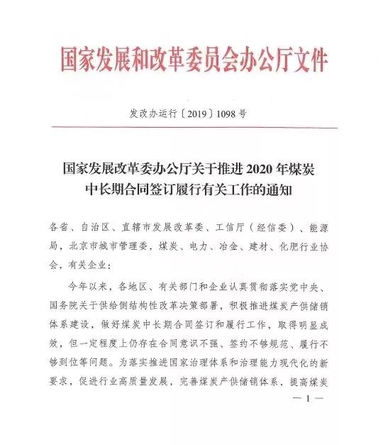 (原题为《国家发改委关于推进2020年煤炭中长期合同签订履行有关工作的通知》)