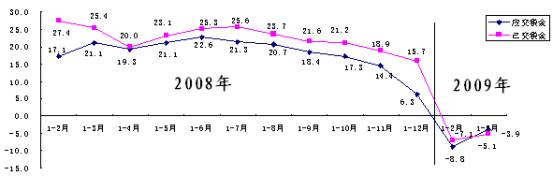 2:2008年至2009年3月应交税金、已交税金增长变化趋势(单位:%)
