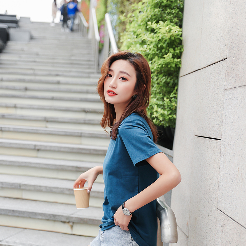 简简单单的 一件纯色T恤+牛仔裤就是好看,颜色不要太挑。
