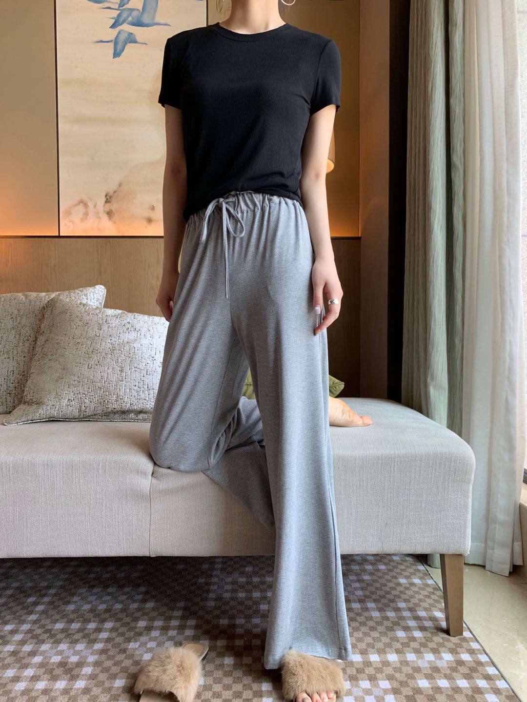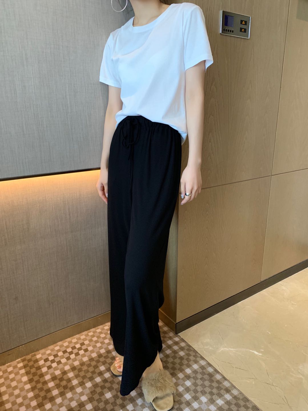 T恤与阔腿裤的完美结合,这套搭配可以说是上班族的绝佳参考了。