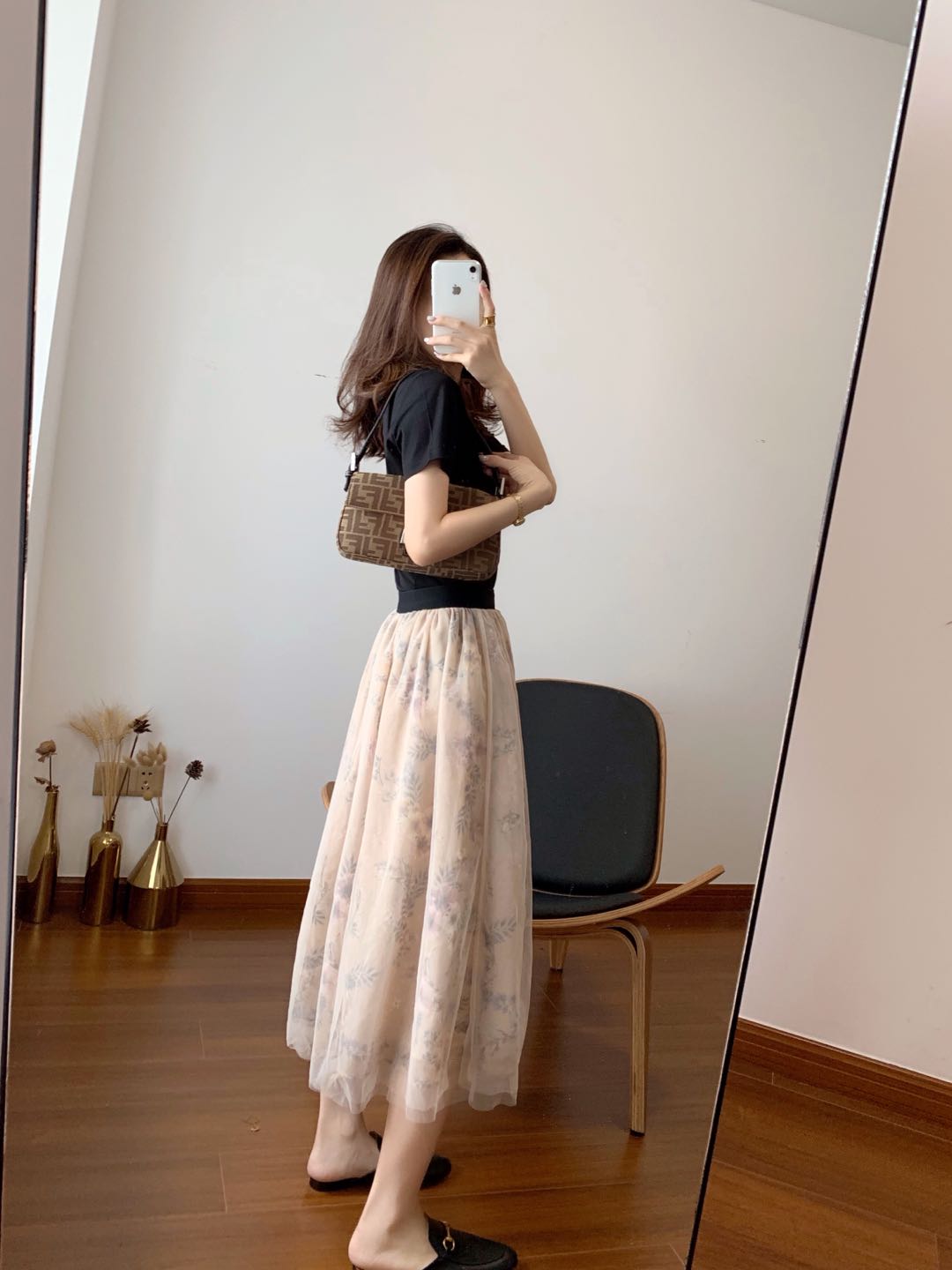 贴身的高腰长裙,性感妩媚,搭配简单的衬衫又清新自然,找好腰线,让自己看起来两米八!