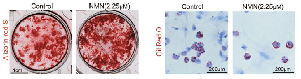 NMN促进体外培养的干细胞成骨,而抑制干细胞的脂肪细胞形成