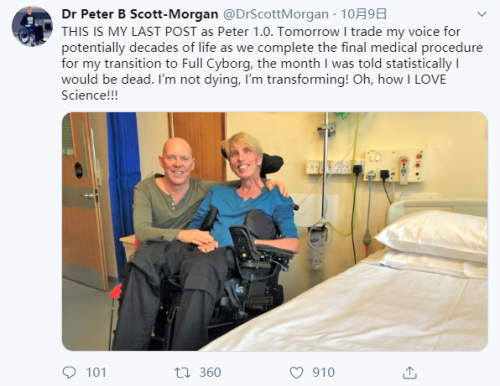 不过使用类似瑞维拓这样的NMN口服NAD+补充剂也并非是富豪们续命的唯一手段,彼得·斯科特-摩根便是用实际行动再一次突破了人类对“延长寿命”的期望与想象。彼得是一位和霍金一样身患渐冻症的机器人科学家,在被诊断出罹患此病时,医生曾经预测他最多只能再存活三年。且随着时间的流逝,他的身体机能会迅速退化,慢慢丧失自理能力,最终死亡。