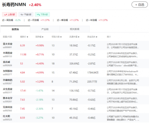 “长寿药NMN”板块受到资本热捧