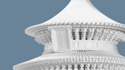祈年殿整体分为三层祈谷坛和三层重檐圆形大殿两大部分,通过搭建你可以非常清晰的捕捉建筑内部的精妙构造,庄严肃穆的栏杆望柱,自由开合的槅扇门窗,平整舒展的三重屋檐,精美绝伦的标志字额,一一映入眼帘,切身体会足不出户感受中国古建筑细节之美。