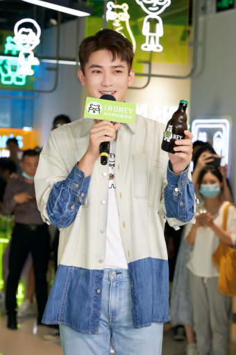 当然,IHONEY迪伦家甘露茶室同样也拿出了十足诚意,店面设计以荧光绿为主色调,对于这个颜色,在场的小浣熊们自然不会陌生,因为荧光绿正是熊梓淇的应援色。店内设计也运用了同色系色调,搭配亚克力和霓虹元素,显得时尚又清新。熊梓淇也向在场的各位媒体、粉丝朋友展示了店内摆放的各类周边,其中包括棒球帽、玩偶、文化衫、手机壳、帆布袋等日常生活中必不可少的搭配单品。点单处的屏幕更循环播放熊梓淇的精美视频,相信小浣熊们都已迫不及待想进店一探。