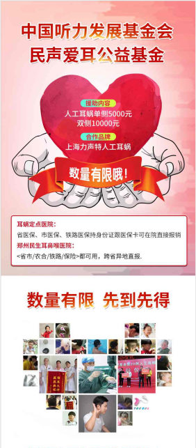 通过多方了解,从朋友处得知上海力声特人工耳蜗联合郑州民生耳鼻喉医院免费做人工耳蜗手术,可以重建听力,我坚定了植入人工耳蜗的决心,人工耳蜗给我无声的世界带来希望,能够见声音的愿望越来越迫切。