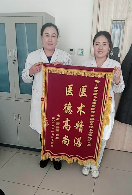 近日,北京国丹白癜风医院白淑芳主任的办公室收到了一份特殊的礼物——患者邮寄的锦旗,鲜红的锦旗镌刻着八个鎏金大字“医术精湛,医德高尚”,虽然简短,但对白主任而言极其的珍贵。