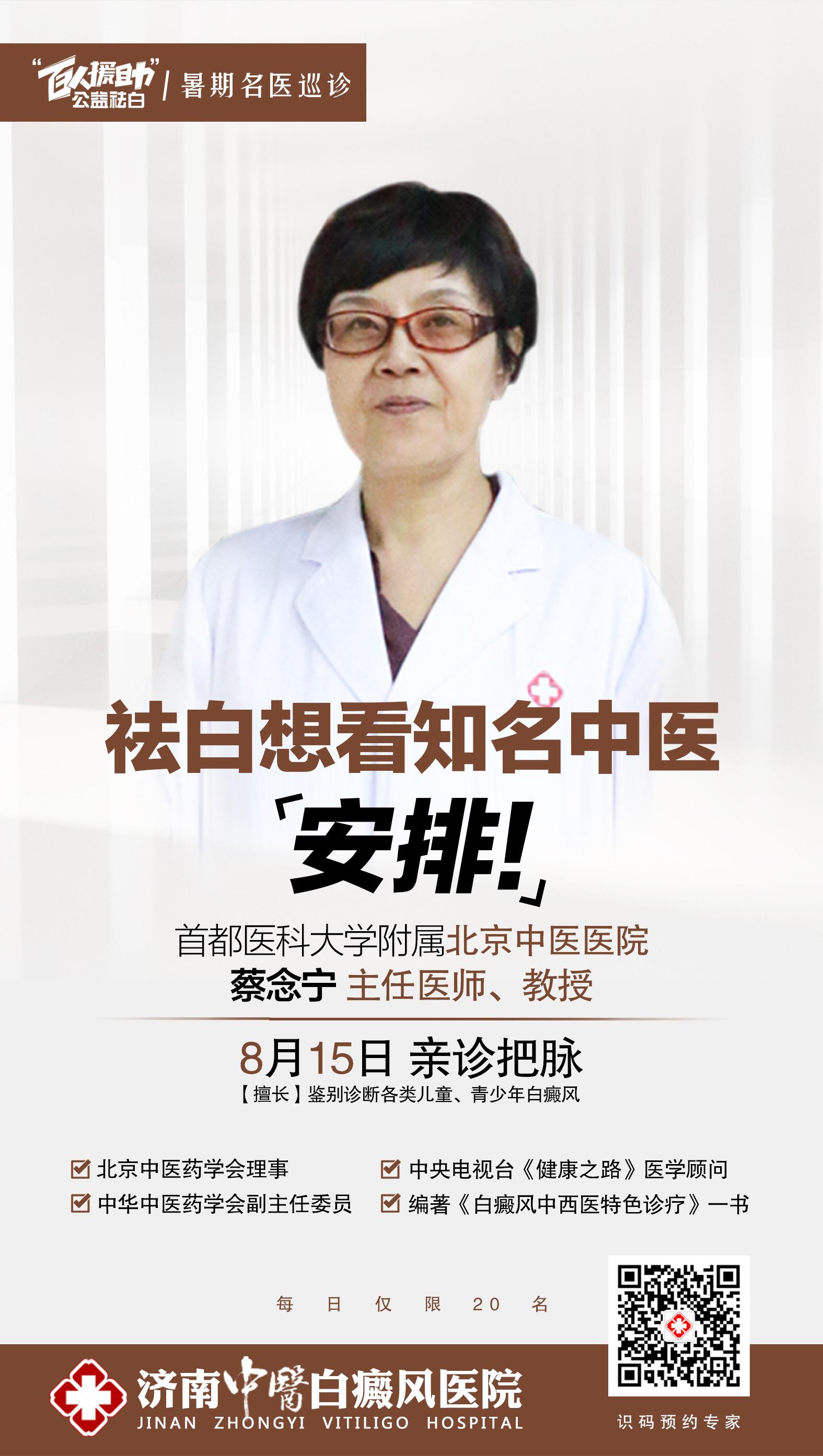济南白癜风北京专家暑期巡诊8月15日首都医科大医院蔡念宁教授