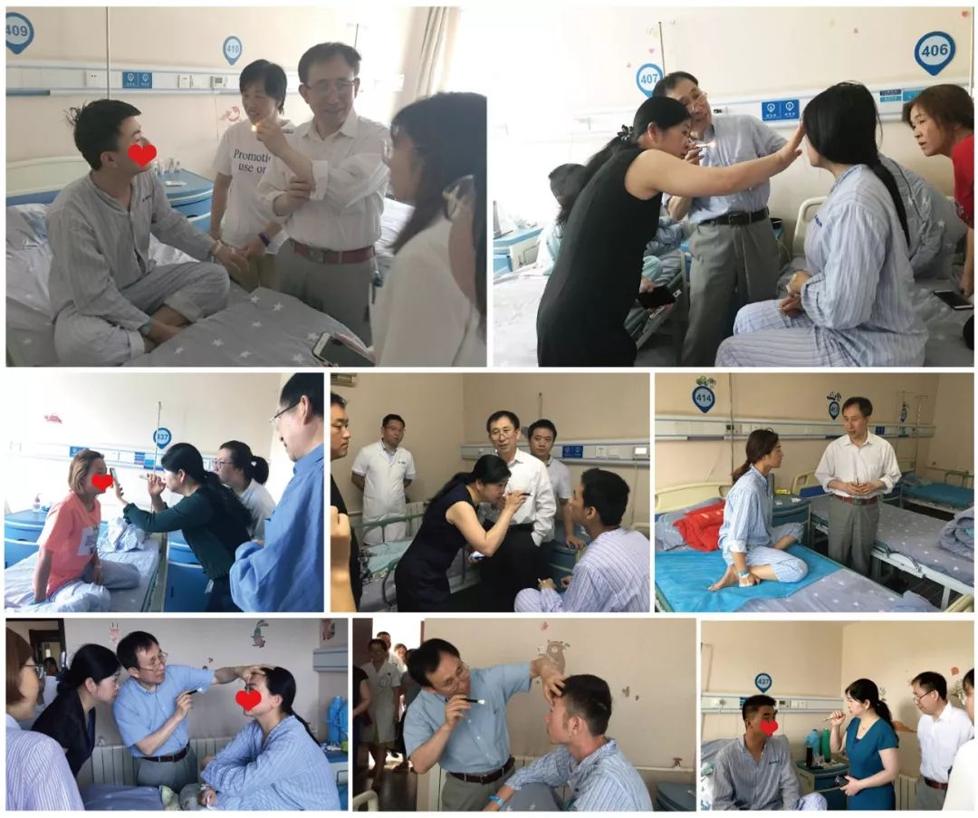 (莫爸爸手术后第一天,查房中杨教授与王教授为他做检查)