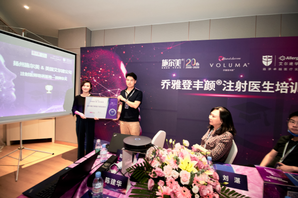 2020年8月13日,扬州施尔美,再添新华章。作为当今全球医美行业领导者之一,艾尔建乔雅登丰颜江苏区域培训基地成立仪式暨注射医生培训会,于扬州施尔美隆重召开。扬州施尔美院长潘家明、艾尔建高级地区经理邱筱婷、专家郑罡等出席并致辞,集体见证这一盛事。