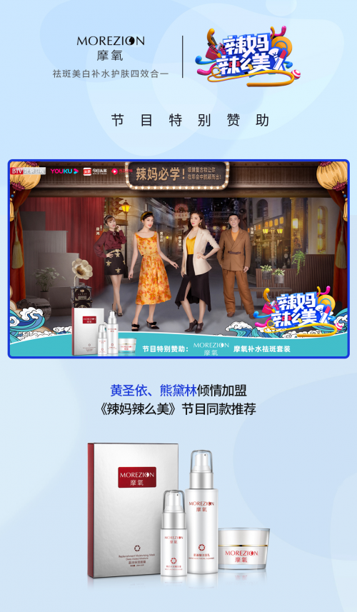 全明星的豪华阵容+优质的节目内容+顶级播放平台,一经开播就已经就引发了全民祛斑热潮,摩氧作为一款堪称超高性价比的祛斑套装,不仅获得了明星辣妈们一致好评,而且被很多女性在各大社交网站平台分享分享、种草,摩氧品牌好评如潮,畅销20年深受消费者青睐,也又一次彰显了摩氧的品牌实力。