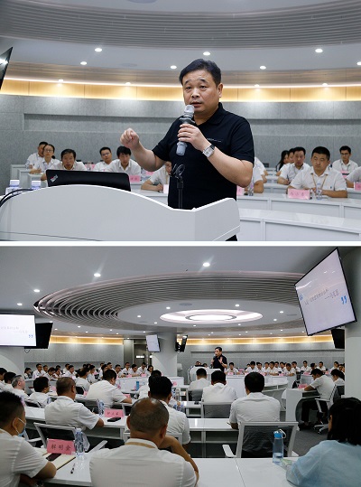潘保春董事长以马克思名言“人的本质是一切社会关系的总和”为切入点,从“人生中存在的各种关系、企业与消费者的关系、企业与代理商的关系、企业与员工的关系、企业与股东的关系、企业与社会的关系”六大角度论述“关系是生产力”。在“人生中存在的各种关系”版块,他从“自我关系、自我与组织关系、自我与社会关系”维度剖析,延伸至企业经营管理中需要注意的方方面面,要求大家面对过去要心怀感恩、面对当下要坚持守正、面对未来要持续创新。