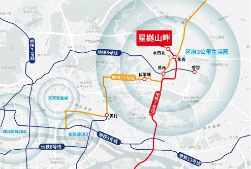 万众瞩目的原因,不外乎科学城区府芯优质地段,而是由于星樾山畔是7号线水西站上盖,真正的地铁就在家门口。且距离21号线水西站仅有约800米,享受双地铁出行。双线八达,串联黄埔科学城、鱼珠第二CBD、大学城、长隆万博CBD-、南站新城、天河智慧城、国际金融城、珠江新城等火热板块。