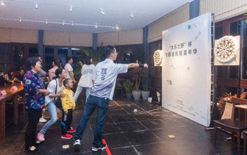 三是飞镖作为休闲娱乐项目在海岛民宿得以体现。飞镖与景区民宿的互动是本次赛事的一大看点,飞镖不仅是一项竞技运动,更是一项休闲娱乐项目,为了给公开赛宣传造势,在赛事前期,组织职业镖手、市飞镖协会会员到海岛特色民宿,与民宿业主和周边市民游客们进行飞镖比赛,成绩优异者可获得免费入住民宿等福利大奖。下一步我市将继续整合一批品质民宿,将飞镖赛事办到景区民宿,并通过网络直播的方式向大众展示,引导游客酷玩飞镖,让游客游玩归来,当回镖客,较好地推动飞镖健身和休闲旅游相结合。
