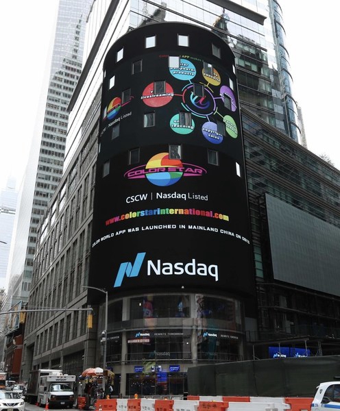 北京时间10月16号(美东时间10月15号),彩色星球科技(纳斯达克代码:CSCW,以下简称:彩色星球)巨幅海报在素有“世界第一屏”之称的纽约纳斯达克大屏公开宣传。这也表明,接下来彩色星球的相关娱乐文化项目将会接连登上国际舞台,与世界观众见面。