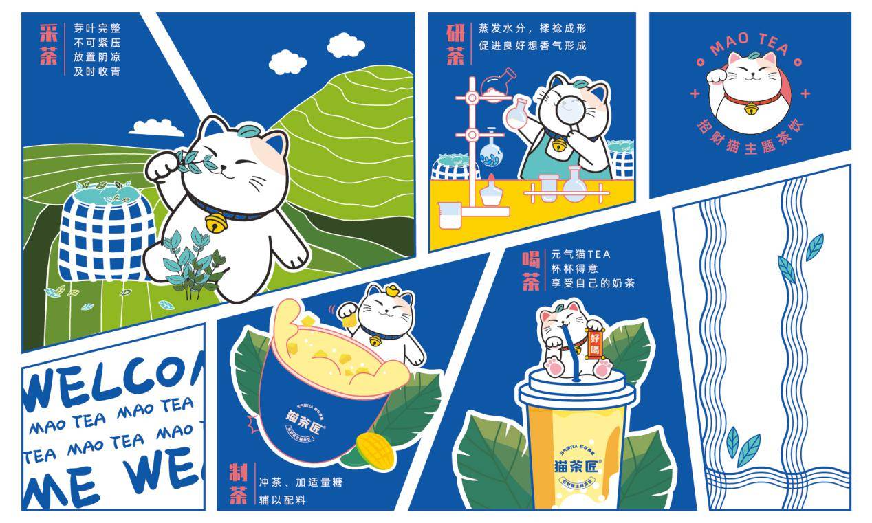 据了解猫茶匠制茶只选用福建小种红茶、鲜果、鲜奶、进口小料等优质食材,打造口感、颜值、健康三优的产品;空间设计上用茶饮和招财猫做为主题,灯光柔和明亮,香气是淡淡的奶茶香;加上各种定制化的物料,贴心又个性化。这种细致入微让猫茶匠成为了消费者家以外温馨美好又治愈的好去处。