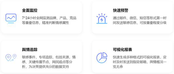 同时还拥有了系统权限、功能模块、监控规模、关键词库、舆情分析报告等模块可定制化,可以为用户提供更好的服务。