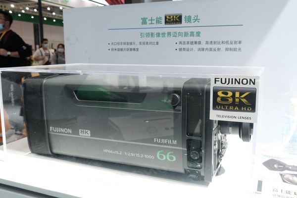 另一方面,在5G的推动下“8K+5G”成为超高清产业新的增长点,而超高清视频技术的应用,也将带动安防监控、远程医疗影像、工业制造等相关产业的创新发展。作为专业镜头制造商,富士胶片利用自身长期在影像、医疗设备等领域积累的光学技术,研发并面向全球推出了多款4K/8K镜头,并已参与到工信部主导的 “5G+8K”超高清视频转播测试项目当中。现场,今年新推出的8K广播电视商用镜头HP66×15.2首次亮相进博会,成为行业焦点。