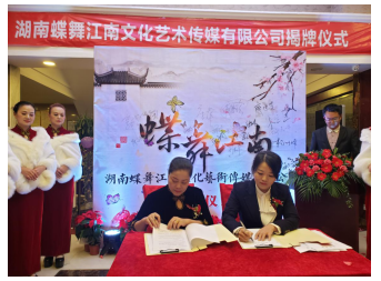 2020年11月8日在湖南怀化天宏大酒楼隆重召开了湖南蝶舞江南文化艺术传媒有限公司揭牌仪式,到场嘉宾及领导共同见证了这个历史性的一刻。湖南蝶舞江南文化艺术传媒有限公司是一家集主持、形体、旗袍、体育、舞蹈、瑜伽培训、演出文化交流等综合性公司。