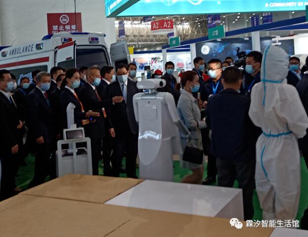 本次健博会健康共同体及每个场馆门口的近百台智能机器人均由湖北人工智能明星企业——武汉霖汐科技有限公司(简称:霖汐科技)提供。应勇书记、王晓东省长等领导及与会嘉宾共同在健康共同体处驻足,并由讲解人员详细介绍了本次大会的机器人科技元素,展示了湖北省在科技抗疫过程中的部分成果。
