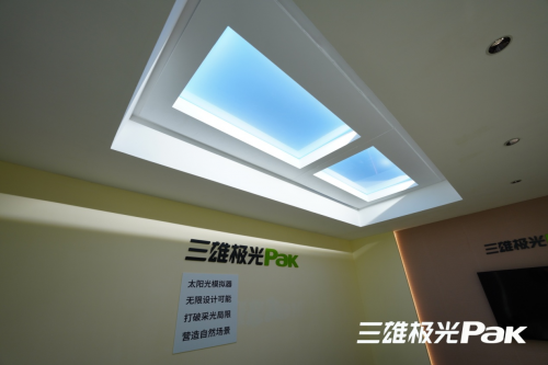 在校园里除了人工照明,室内的自然采光也是不容忽视的。阳光是世间万物生存的基本条件,也是对人体健康影响最大的自然光。采集自然光,也会使室内空间显得不再那么局限和封闭。然而在高密度高层建筑群中的低楼层中,或者单层建筑面积较大的建筑物室内,自然光采集往往很难达标。而三雄极光这次亮相厦门教装展的这款太阳光模拟灯,在场景上完美地解决了这个问题。