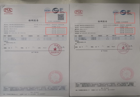 中碳能投科技(北京)有限公司篡改内蒙古鄂尔多斯高新材料有限公司检测报告(左图为真实报告,右图为篡改报告)