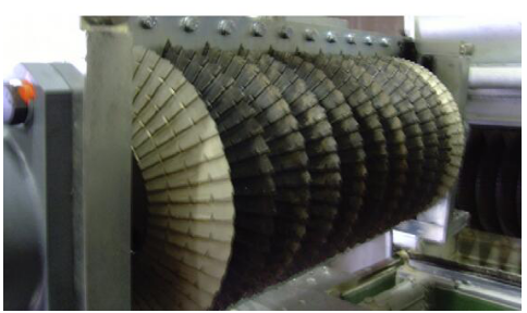 龙昌节能王的滚刀表面经过特殊处理,使其更耐磨,滚刀工作时可以对物料进行充分冲击、剪切及研磨。此外,龙昌节能王的碟盘上布满密密麻麻的小牙。