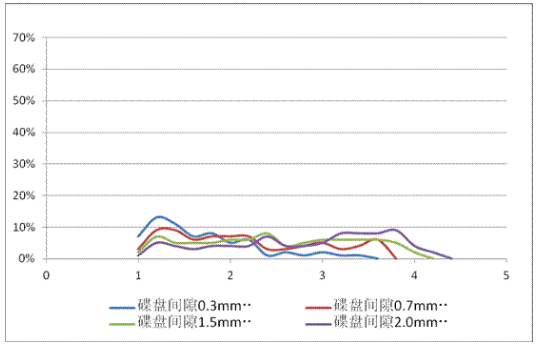通过这些数据我们不难看出,龙昌节能王粉碎机粉碎分布主要在1.0mm-4.0mm,而且这个区间粒度占比较为均匀。这个特性预示着生产蛋禽玉米时,龙昌节能王有着天生的优势,粒度通过滚刀间隙可在0.20mm至3mm之间,小范围灵活调整,含粉率可控。