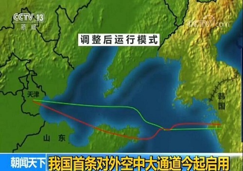 据介绍,中韩空中大通道全长约1100公里,国内段覆盖中国山东半岛及渤海湾地区,衔接韩国,实现中韩两国航路由过去的“单向相对运行”全面升级为“双向来去分开运行”。