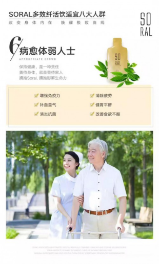 大品牌、好成分、好功效、好品质,Soral轻盈美颜饮集塑型美颜、日常保健、疫病预防等多重功效于一体,适合全家老小男女老少共同食用。花一份钱改善多种问题,每天一包即可补充人体所需六大营养元素,有效改善亚健康人群生活状态,尤其适合爱美女性、三高人群与老年人食用。