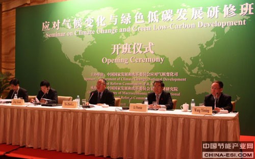 11月21日下午,国家发展改革委气候司在京举办了应对气候变化与绿色低碳发展研修班开班式,解振华副主任出席开幕式并致辞,气候司巡视员高广生主持。参加开班仪式的还有国家发展改革委副秘书长李朴民、财政部经建司副司长曾晓安、国家发展改革委宏观研究院副院长王一鸣、联合国开发计划署驻华代表和部分国家驻华大使及来自各国的学员共80人。本期研修班是我国首次利用应对气候变化国际合作专项资金,为最不发达国家、小岛屿国家和非洲国家提供务实的帮助,也是积极开辟新渠道,宣传我国应对气候变化立场、政策和成效的重要尝试。