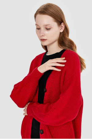 全棉时代女士棉线开衫(幸福红)