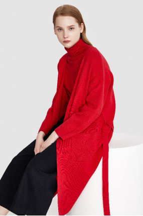 红色总能恰当地释放女人的炽热浓郁,一件长款的红色针织衫,用来加持气场必不可少。100%优质精梳棉,柔软舒适;线条利落,系带的设计,彰显优雅气质。一抹优雅显气质的红色,轻松打造醒目开运look,时尚俏丽好运连连。