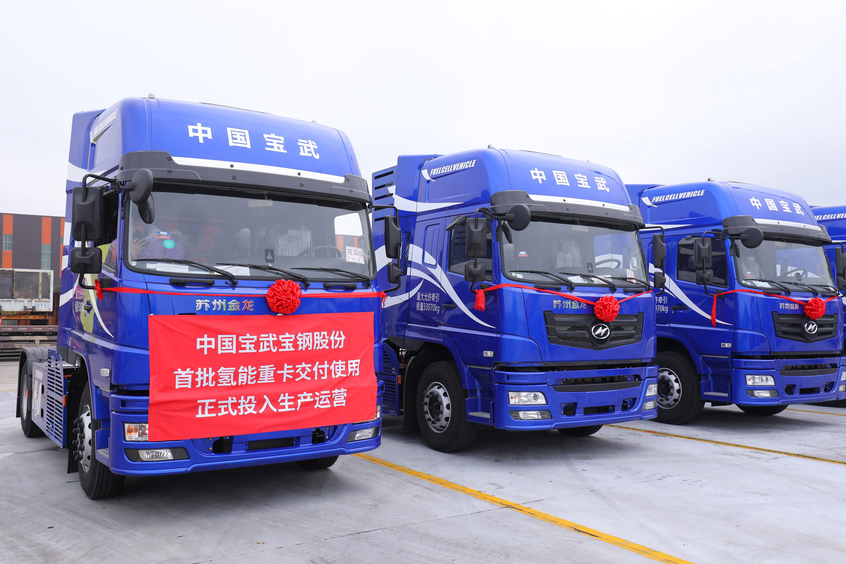 如今,苏州金龙氢燃料电池重卡也已经开启了批量商用化运营。2020年12月29日,60辆苏州金龙为宝钢股份定制的42吨半挂氢能重卡正式交付并投入运营。这也是全球范围内,一次性批量投入数量最大的氢能重卡商业化运营项目。