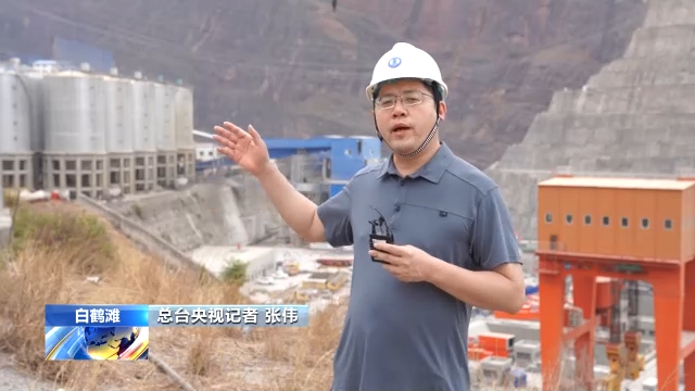 总台央视记者 张伟:在白鹤滩工地现场,35摄氏度以上的高温是常态。我们计算了一下,白鹤滩大坝浇筑的混凝土从拌合楼出来,通过自卸车开到供料平台,然后通过缆车将混凝土运送到大坝的浇筑现场,大约需要7分钟,在不断变化的环境和高温天气下,到达现场的混凝土温度也不会超过8摄氏度。