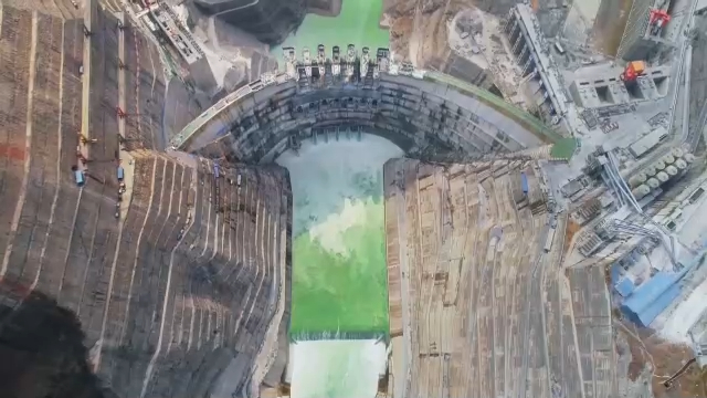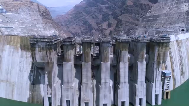 水电站的拦河拱坝高289米,相当于100层楼高,为世界第三。