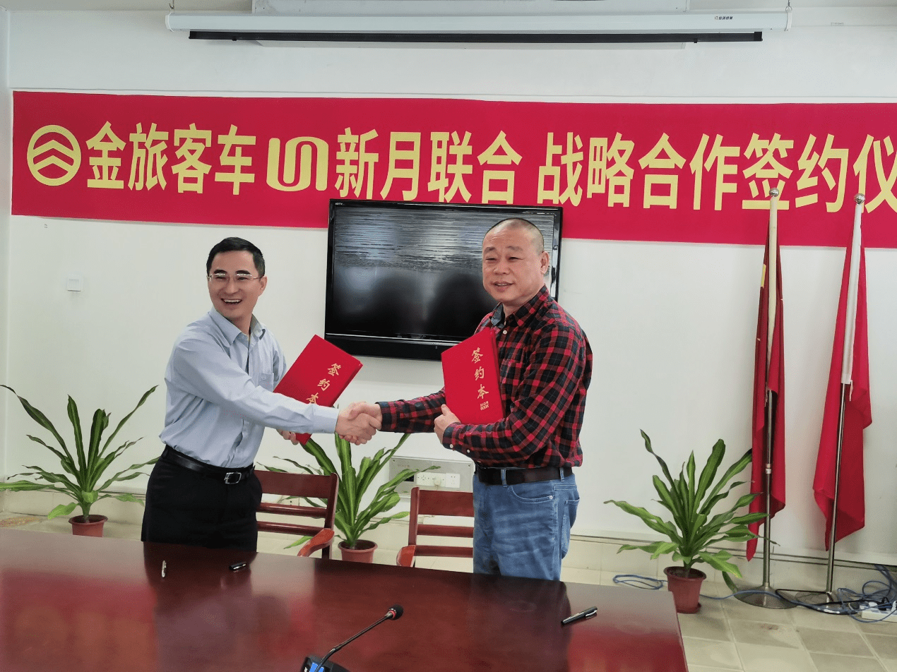 今年4月15日,北京新月刘长青董事长、刘长江总经理一行莅临厦门金旅考察参观,厦门金旅董事长、总经理彭东庆、副总经理赖志艺陪同接待。双方本着平等互利、优势互补的原则,经友好磋商,于4月16日签订战略合作协议,结成长期、全面的战略合作伙伴关系,在未来五年内客车采购首选金旅客车,其中2021年度第一批采购100辆领航者于6月交付,第二批160辆领航者于年底交付。