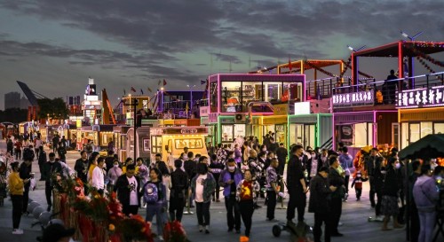图 | JEKEEN街景梦工厂为黄山新安夜市定制了整套场景,由集装箱地标和移动商铺组成国潮风夜市