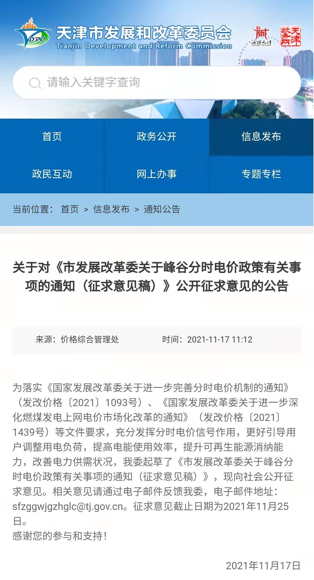 为充分发挥分时电价信号作用,更好引导用户调整用电负荷,提升电能使用效率,服务以新能源为主体的新型电力系统建设,近日,天津市发改委发布《关于峰谷分时电价政策有关事项的通知(征求意见稿)》,向社会公开征求意见。