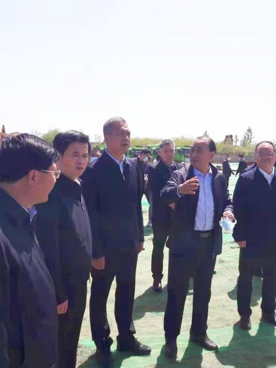 (左起)区长王润军、市长王勇、市委书记杨广亭、宝鸡杭叉总经理祁翔、区委书记薛建恩