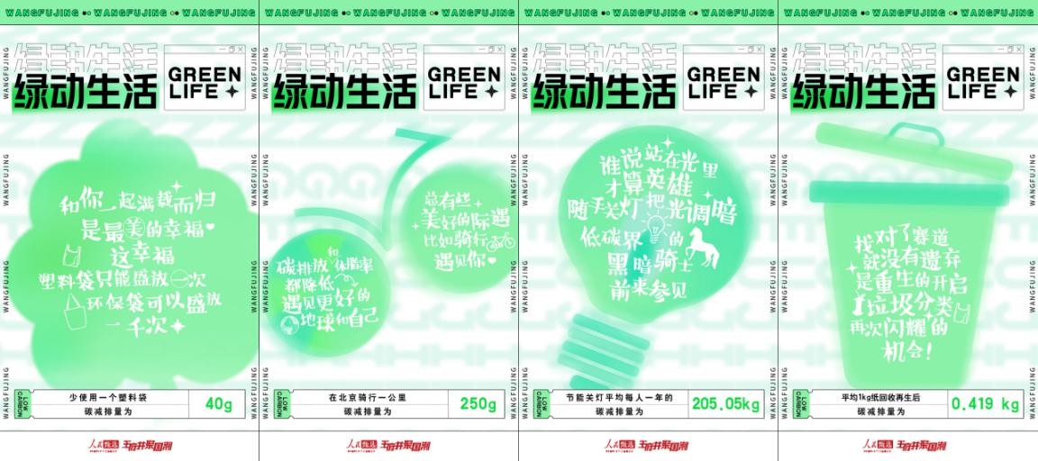 此次“人民甄选·王府井聚国潮【绿动生活计划】”联合中华环保联合会、绿普惠、京东科技等品牌共同发起。作为人民创意携手与王府井集团联合打造文化消费IP“人民甄选·王府井聚国潮”的最新活动主题,活动主要围绕运动、健康、环保、低碳科技等概念,联合百余家品牌共同打造“绿动新生”商品活动、“绿动先锋”、“绿动潮能任务”等互动环节,涵盖运动户外潮品、化妆品、功能餐饮等品类,全面贯彻“节能降碳、绿色发展”理念,开启国民消费市场的“向绿模式”,活动预计持续至2022年5月8日。