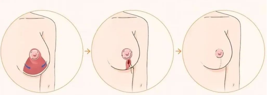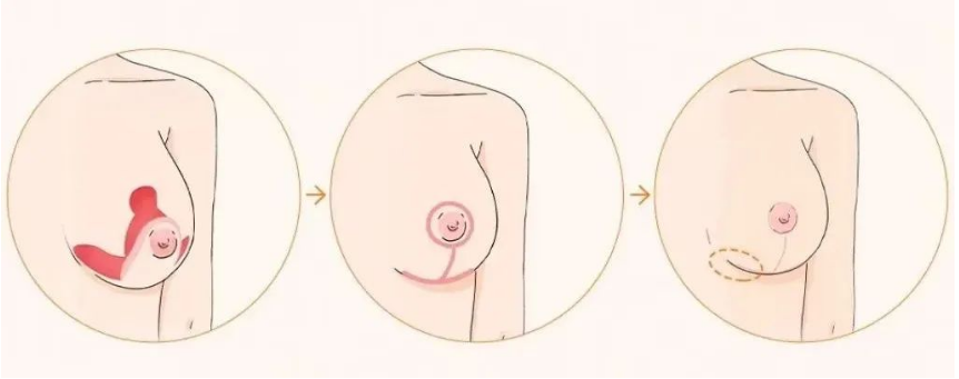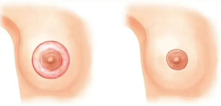 双环切口是沿乳晕边缘切开,去除周围部分松弛皮肤后再收紧,恢复后疤痕较为隐蔽。