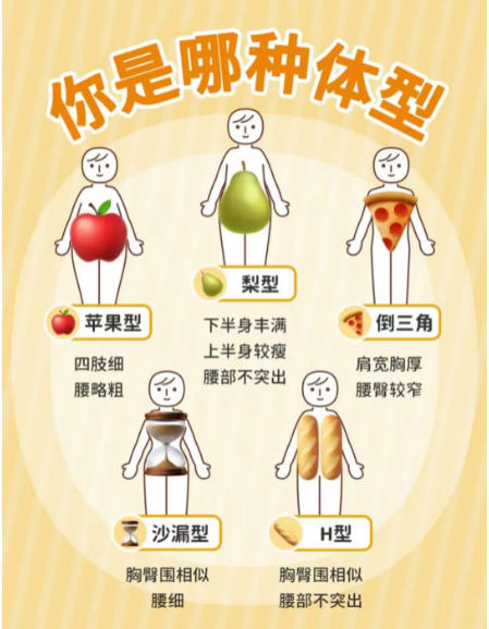 精致的女生身材管理总是快人一步!春季可是“减肥黄金期”,你还不抓住机会的话,等夏天一到,可就只能露“肉肉"啦~瘦身之前我们先来区分一下体型吧。