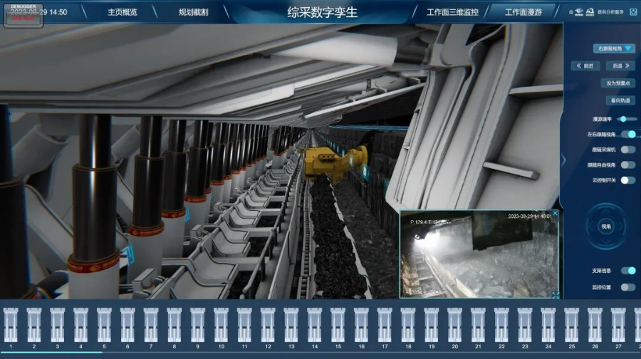 精确到“毫厘”,对于国神府谷公司三道沟煤矿来说同样不是难事,操作矿上的数字孪生系统,矿井下的液压支架会随着屏幕中虚拟场景里设备而移动,误差不超过5厘米。