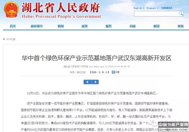 1.12月18日,光谷动力绿色环保产业园作为华中地区首个绿色环保产业示范基地落户武汉东湖高新区。