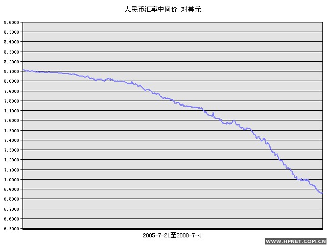人民币元/1美元 2005年7月21 至 2008年7月4日