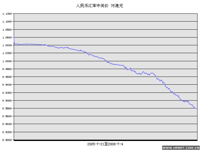 人民币元/1港元 2005年7月21 至 2008年7月4日