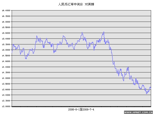 人民币元/1英镑 2005年7月21 至 2008年7月4日